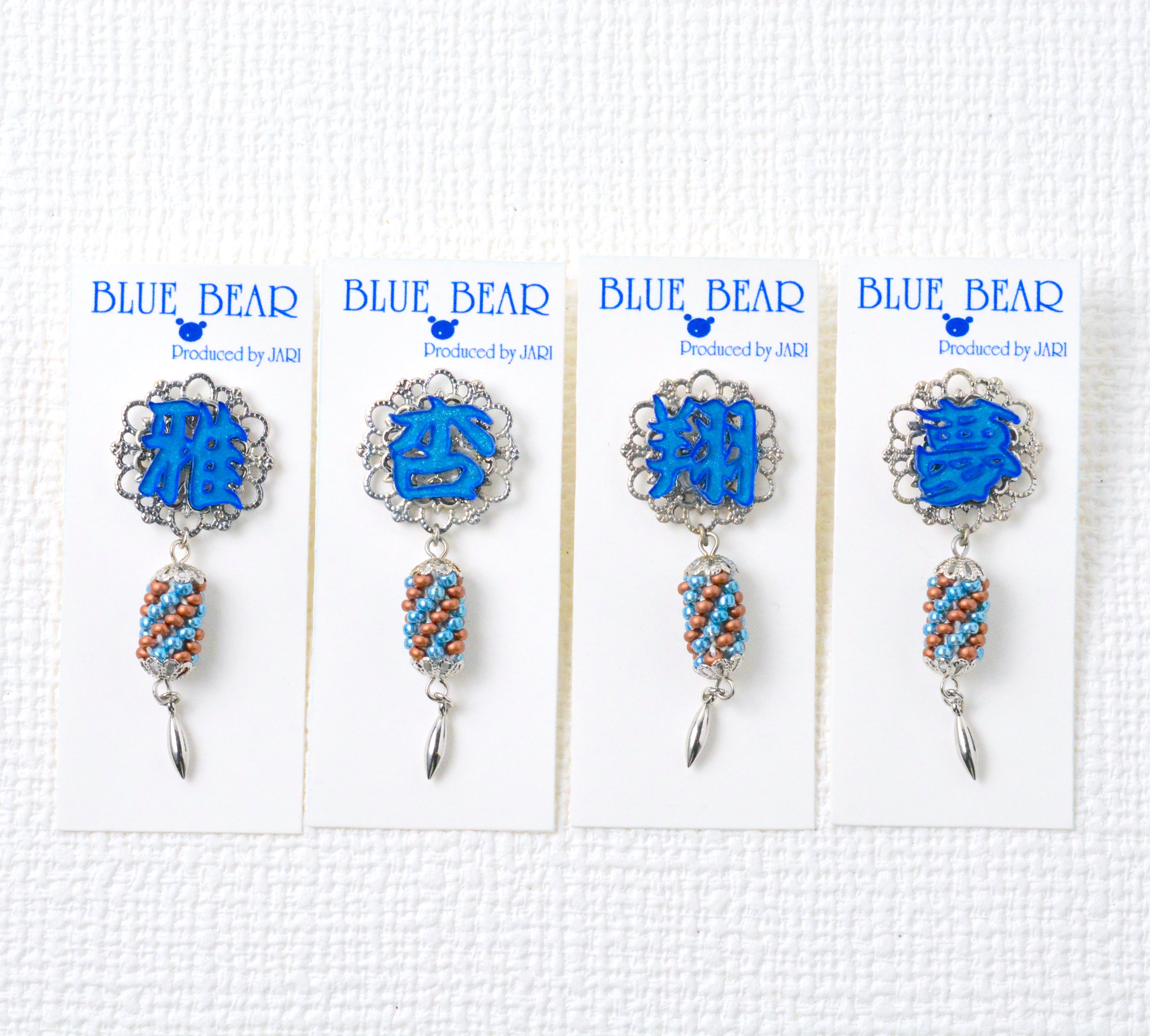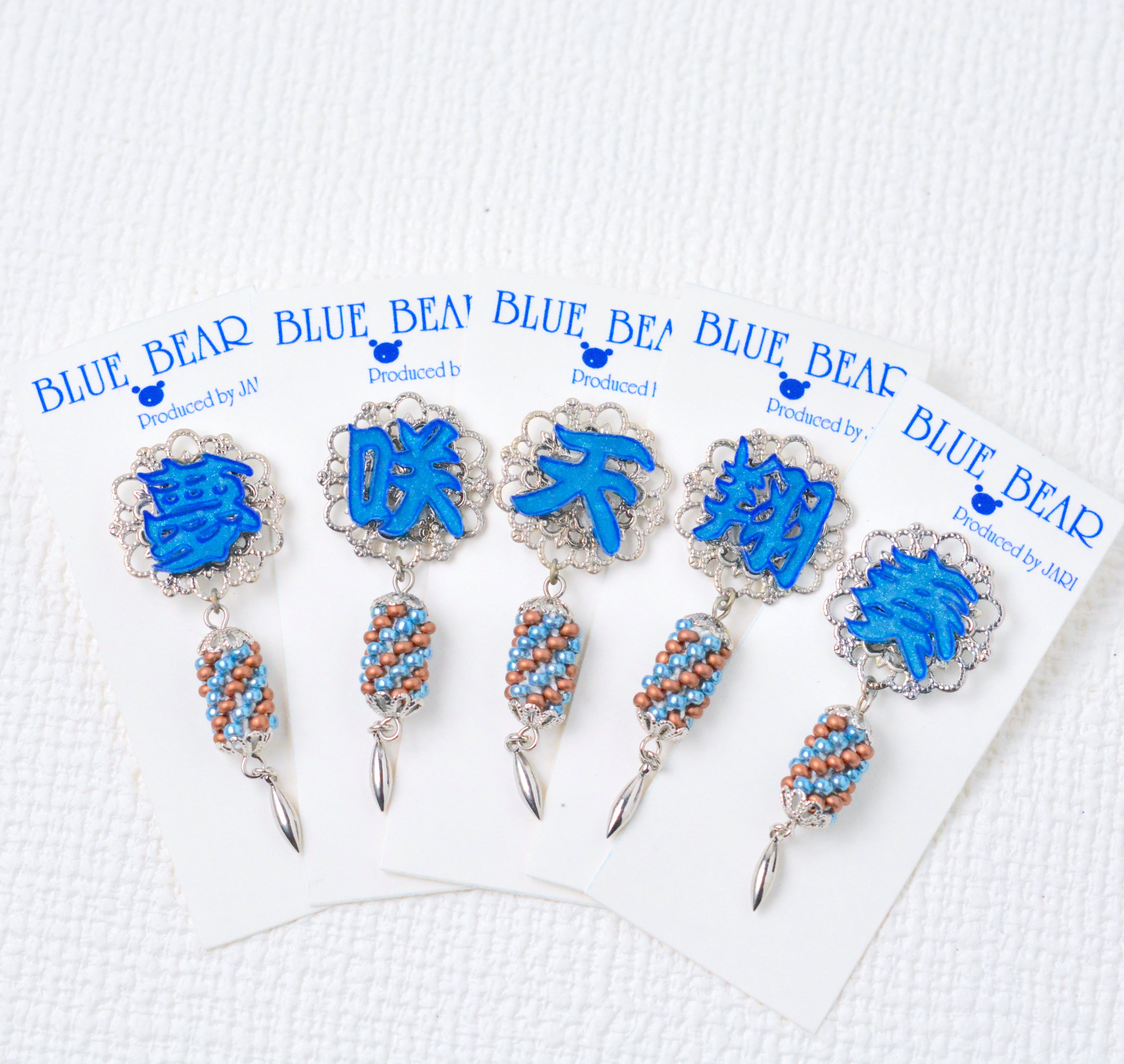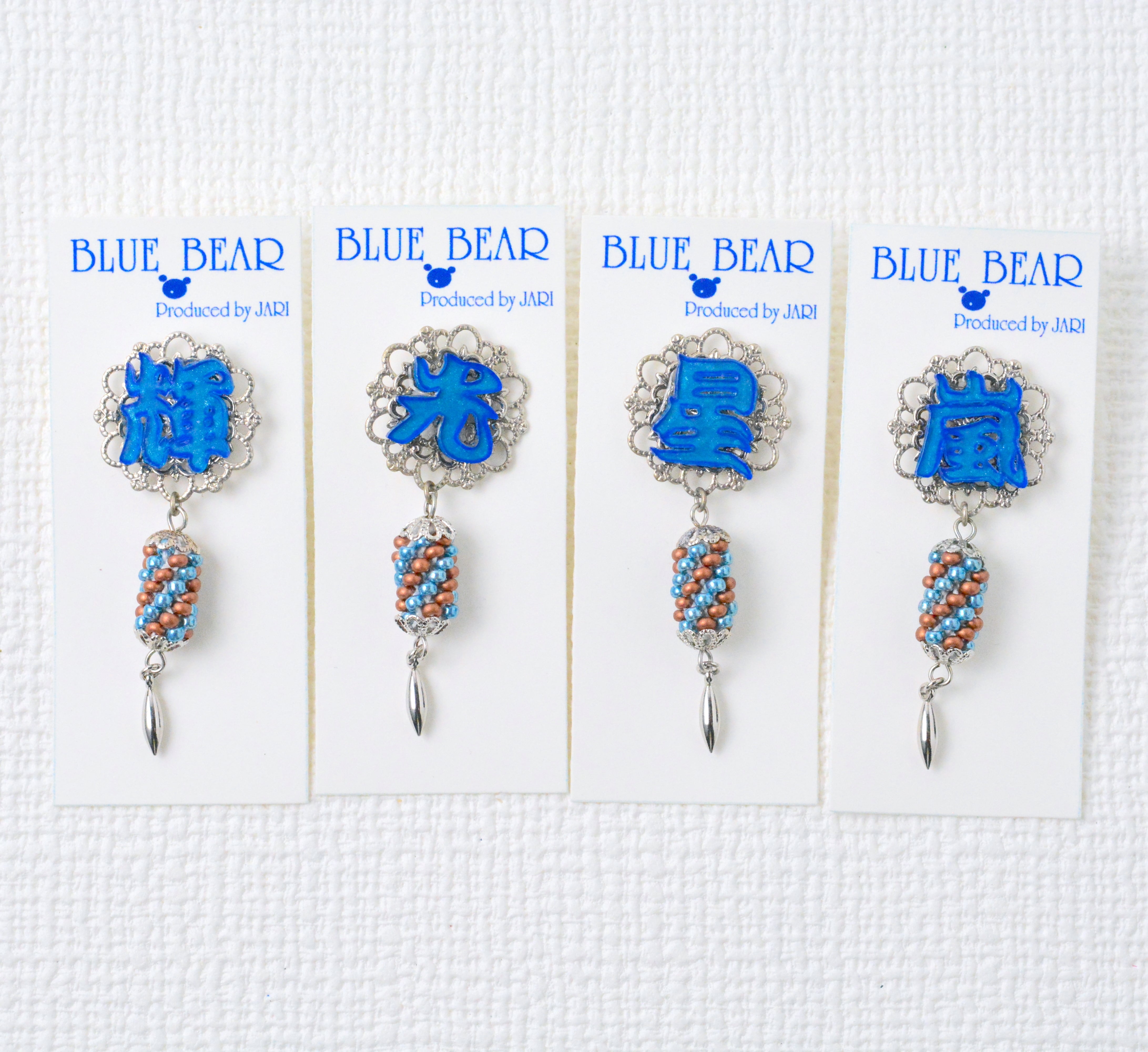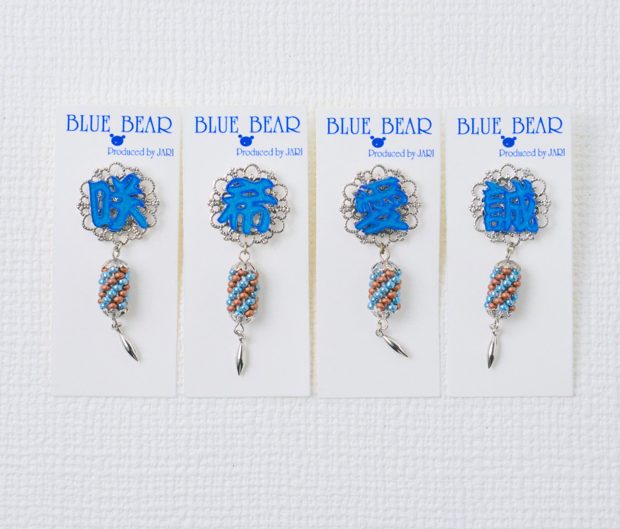 【在庫限り】漢字のピンバッジ(限定カラービーズチャーム付き)