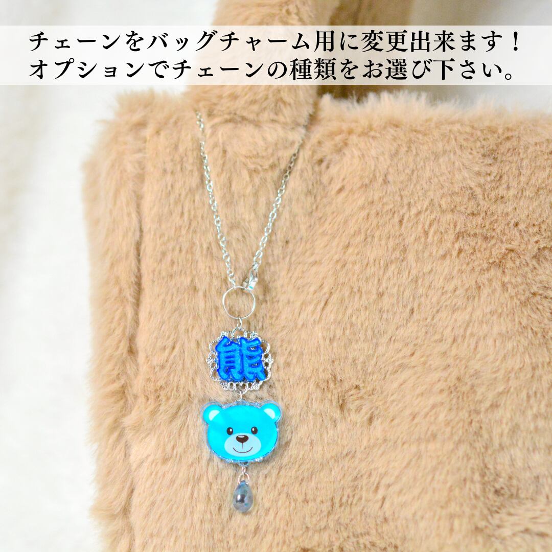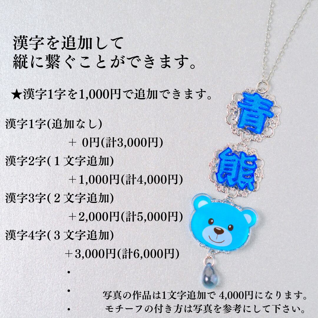 青い熊のかわいい顔のプレートと漢字を合わせたネックレスです!