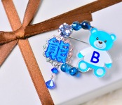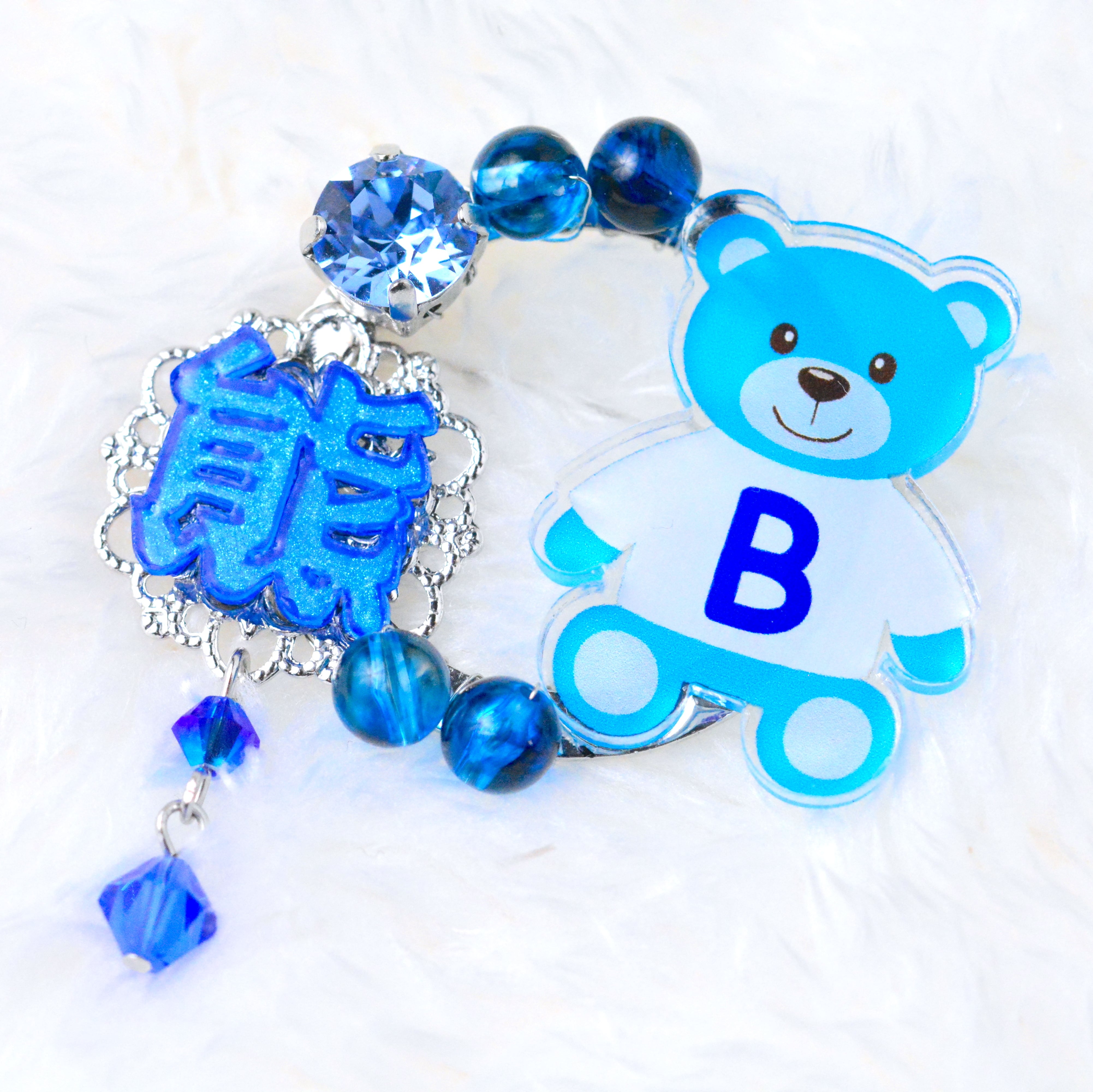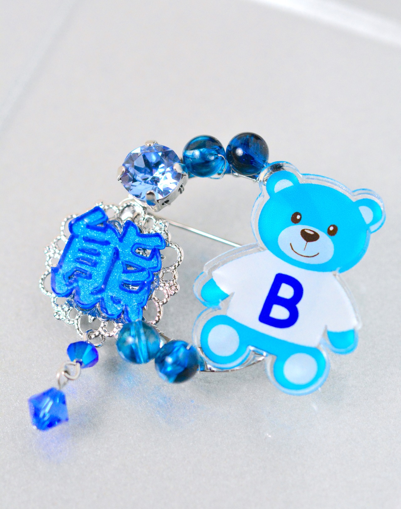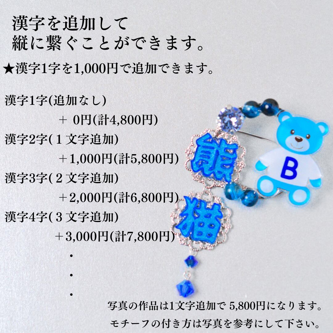 青い熊のかわいいプレートと漢字を合わせたブローチです!