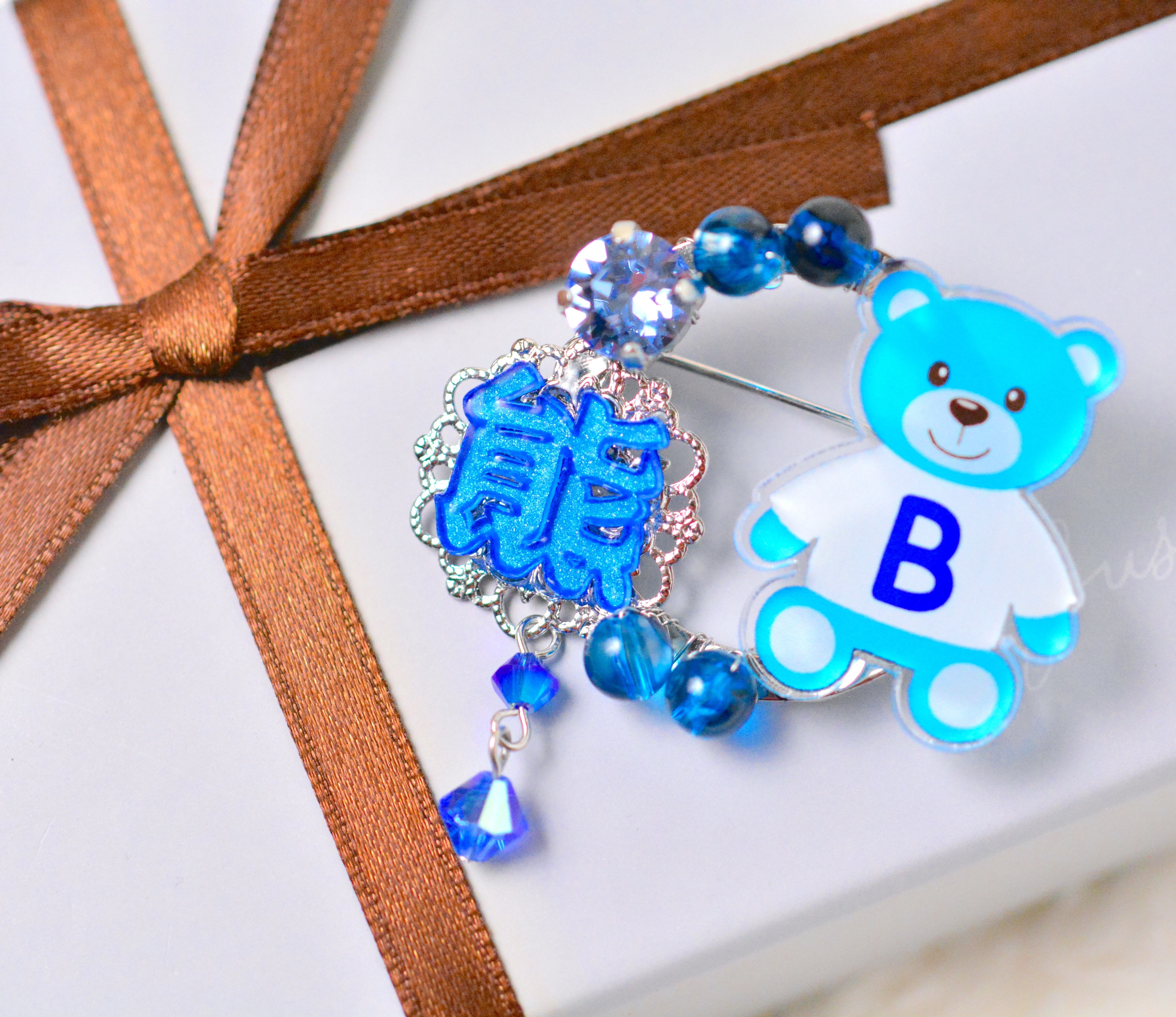 青い熊のかわいいプレートと漢字を合わせたアクセサリーのセットです!!