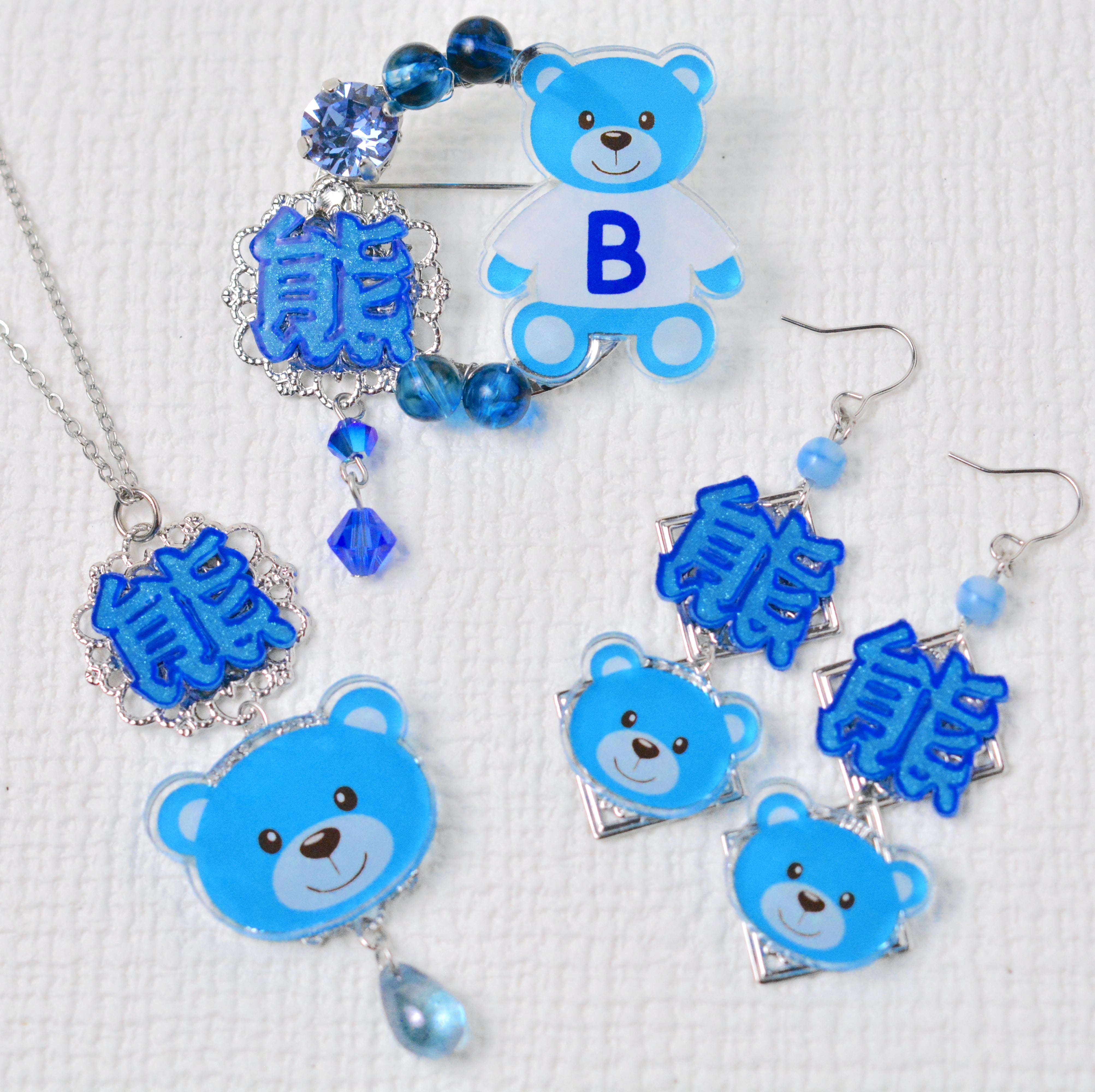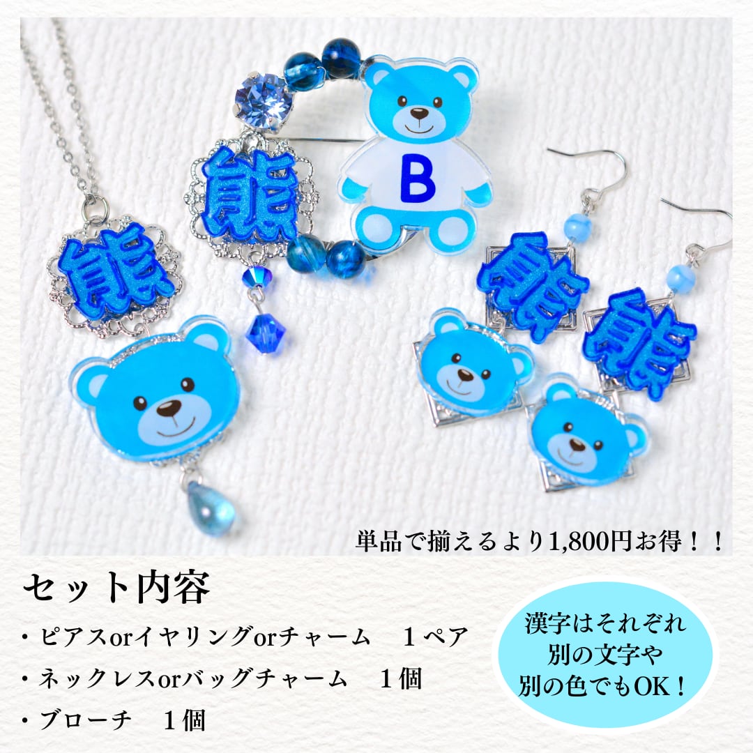 青い熊の漢字のアクセサリーセット