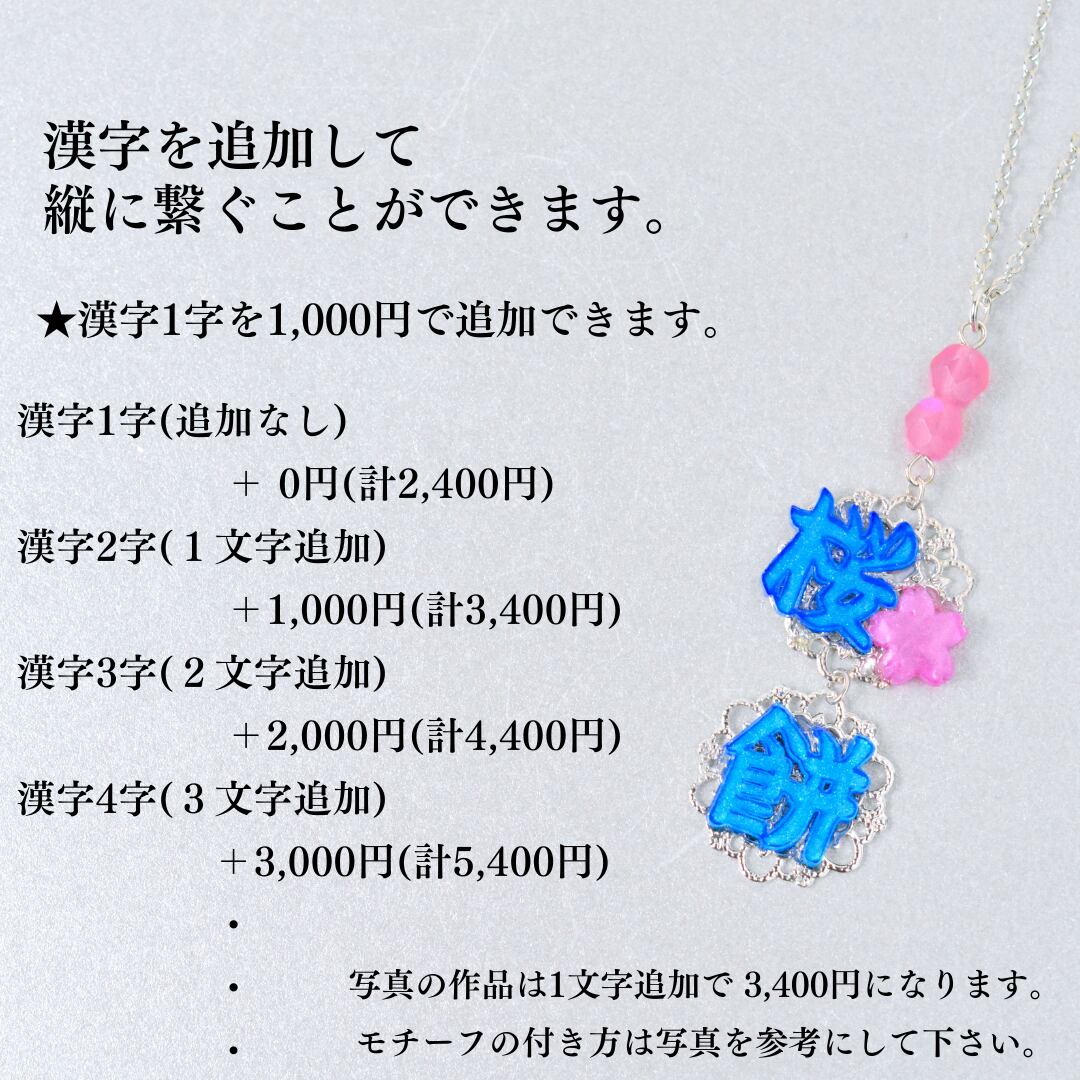 ✳︎通常1文字2,400円で注文をお受けしていますが、1文字1,000円で漢字を追加し、縦につなぐことできます。