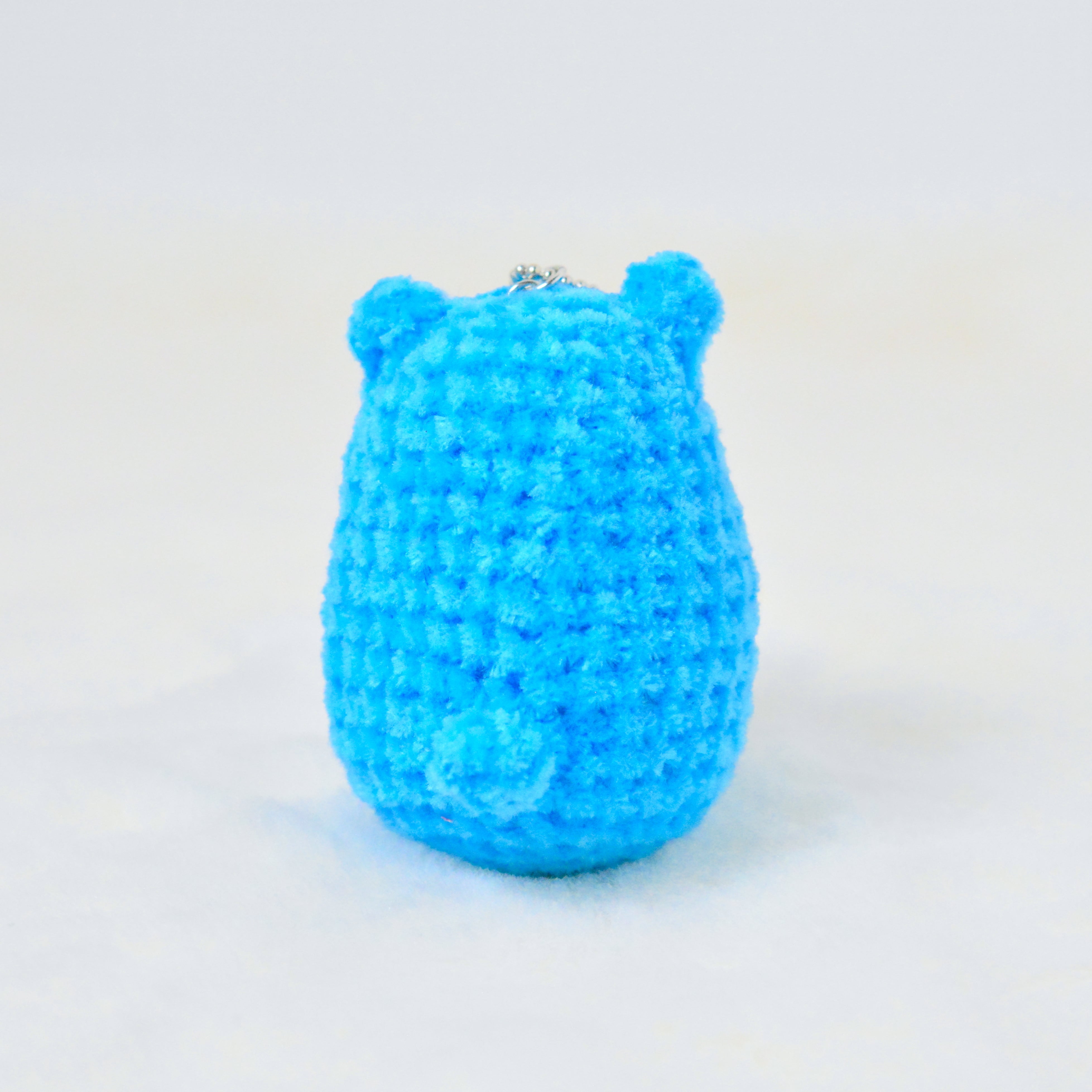 手のひらサイズのクマのあみぐるみです。お腹の部分にBLUE BEARの漢字のバッジが1つ付くようになっていて、お好きな文字・推しの文字などを付けて楽しんで頂けます!!