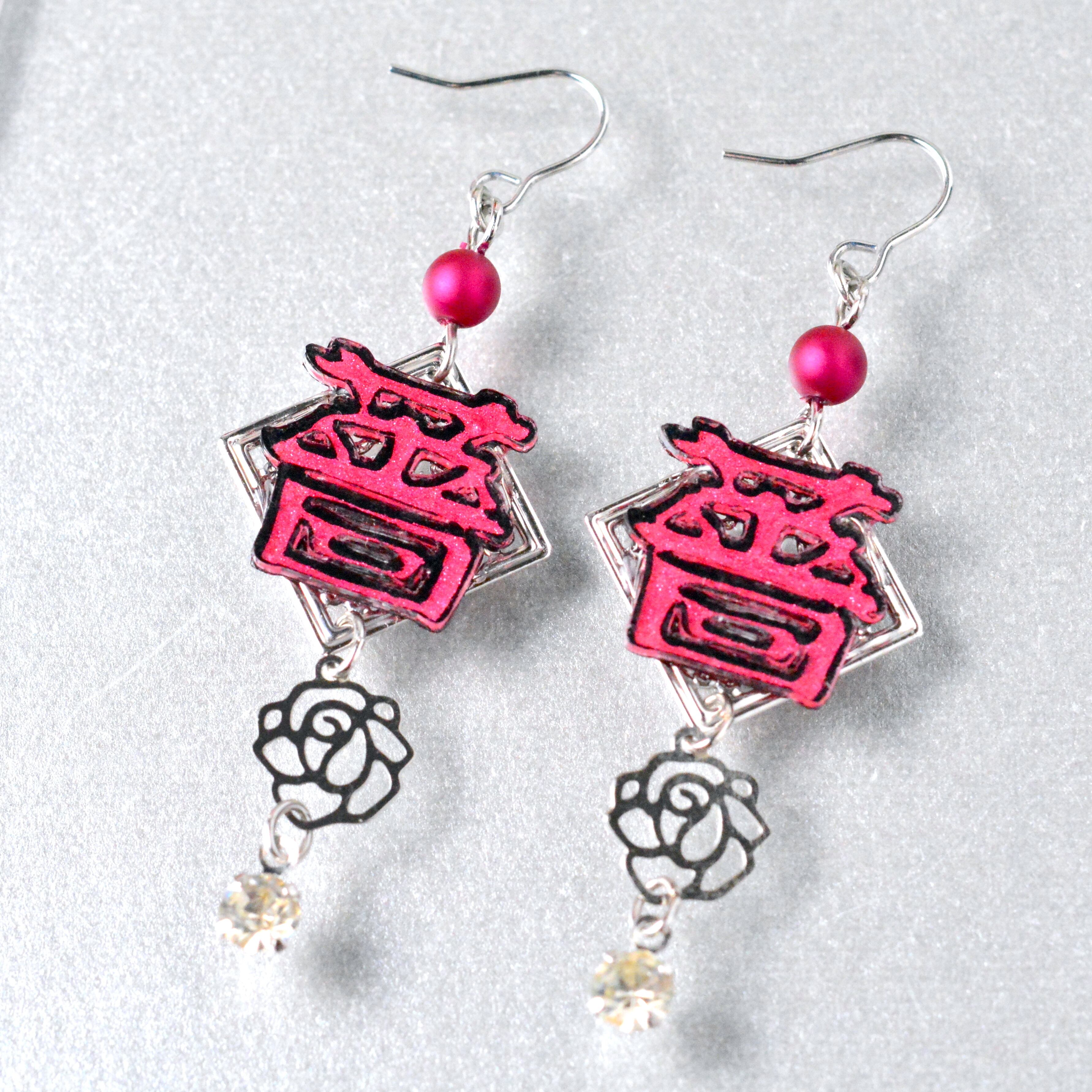 「薔」の漢字のチャーム、片耳ピアス・イヤリング
