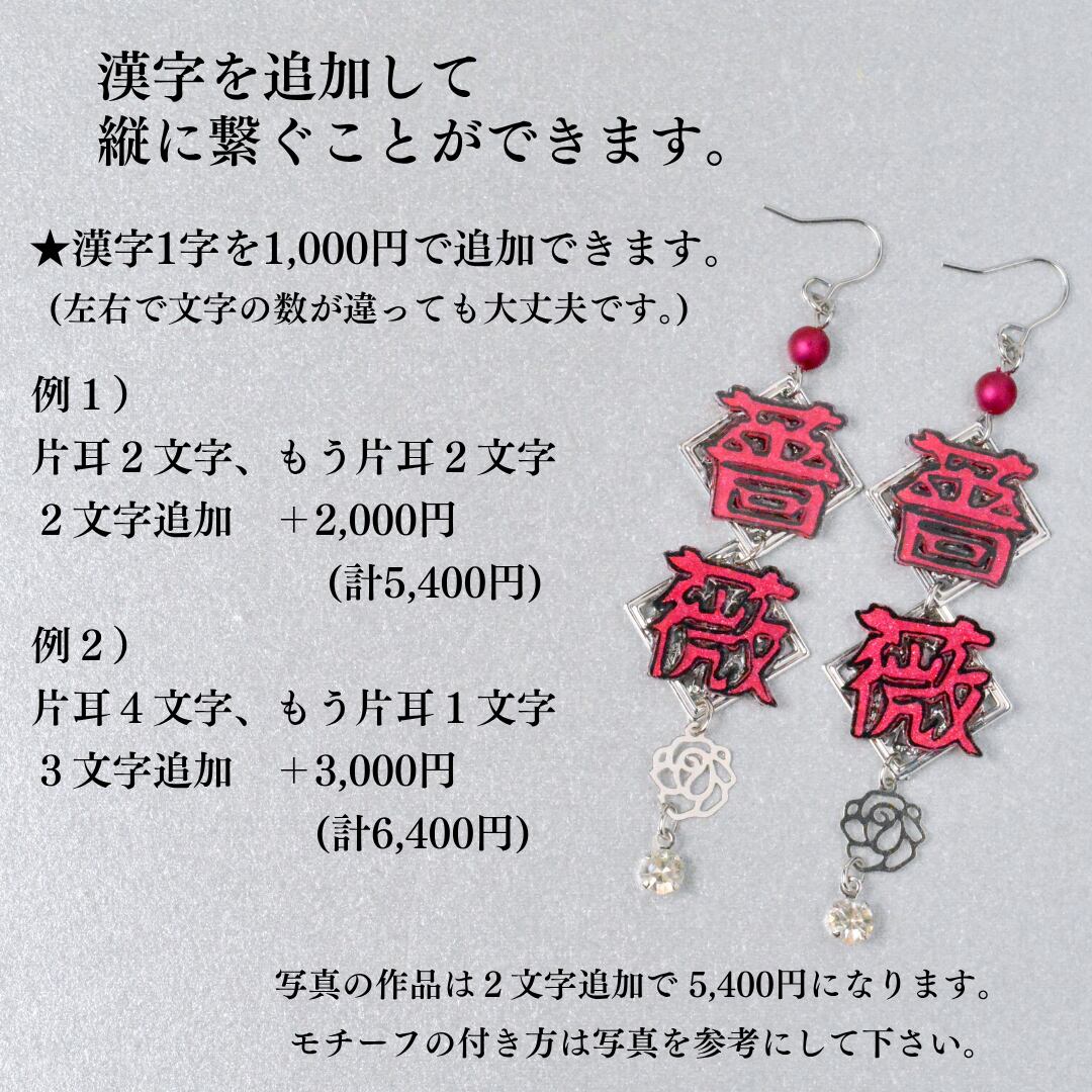 ✳︎通常両耳1文字ずつで3,400円で注文をお受けしていますが、1文字1,000円で漢字を追加し、縦につなぐことできます。